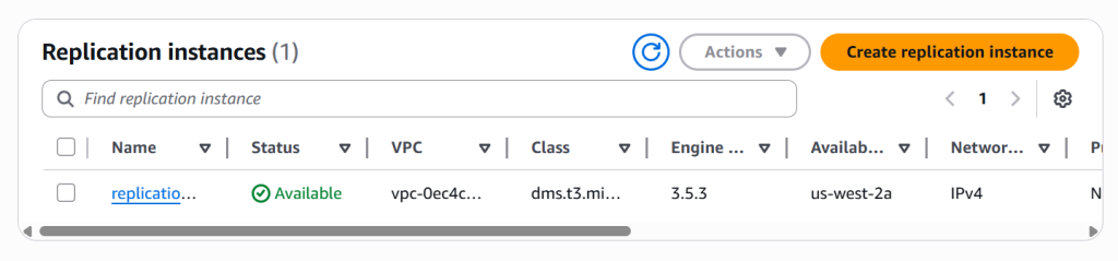 In this lab, a MySQL instance hosted on EC2 was migrated to Aurora RDS for MySQL. In order to accomplish this goal, a replication instance was created to host the migration. Next, two endpoints were created. One to connect the source database, and another to connect the target database. Lastly, a migration task was created to perform the database migration. The results of the migration were verified using MySQL Workbench.